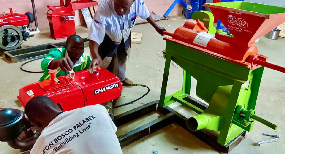 Installation of one of the two Maize processing machines, purchased through donations received via the Salesian Missions has taken place at Akworo’s Agriculture store.